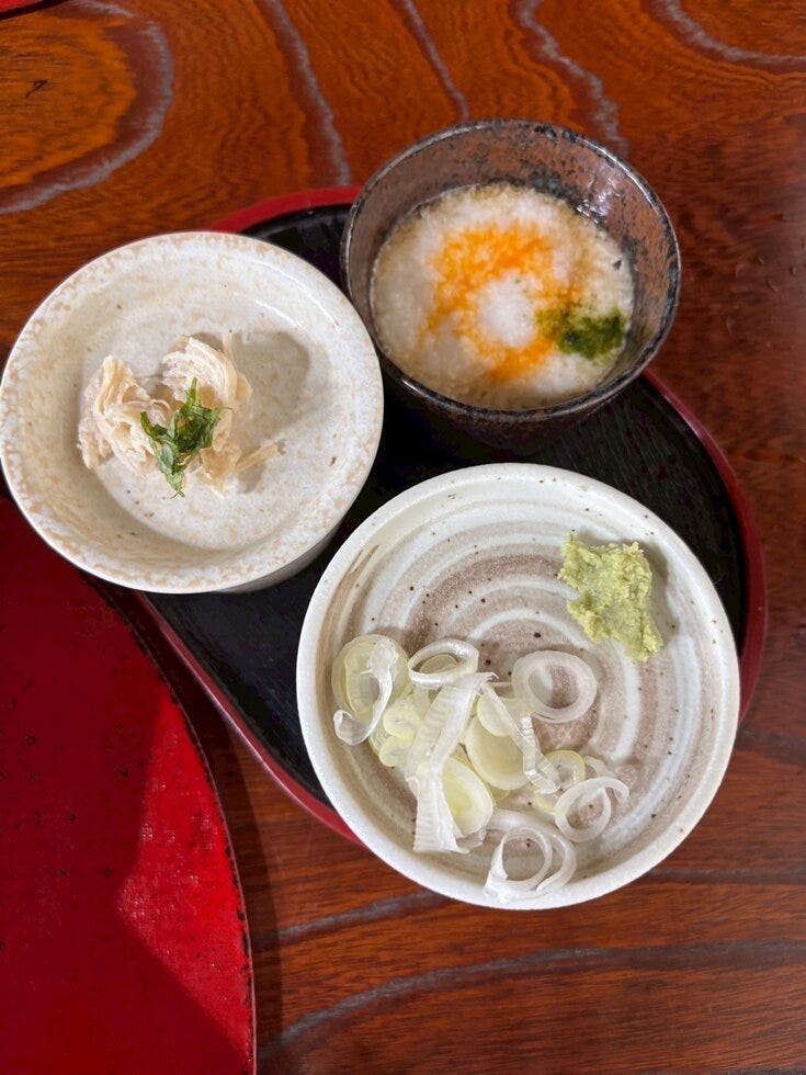 お蕎麦は3種類のつけ汁で好きなように食べられます(๑´ㅂ`๑)